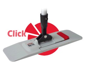 Stabiler Magnet-Klapphalter mit automatischer Arretierung in Senkrechtstellung. Abgeflachte Enden mit runden Ecken sorgen für einfaches Einführen in den Mopp.